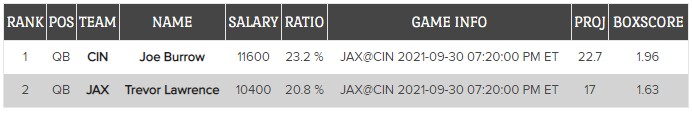 Although it’s not the most intriguing matchup on paper, there are still plenty of fantasy ramifications at stake in this game as Burrow tries to elevate the Bengals to a surprising 3-1 start and Lawrence tries for his first win.