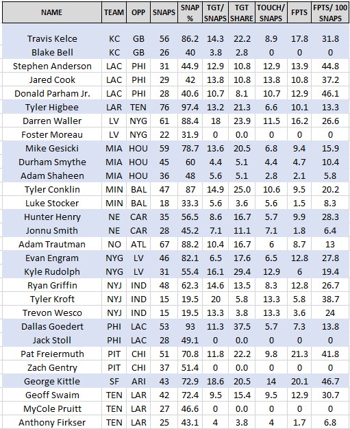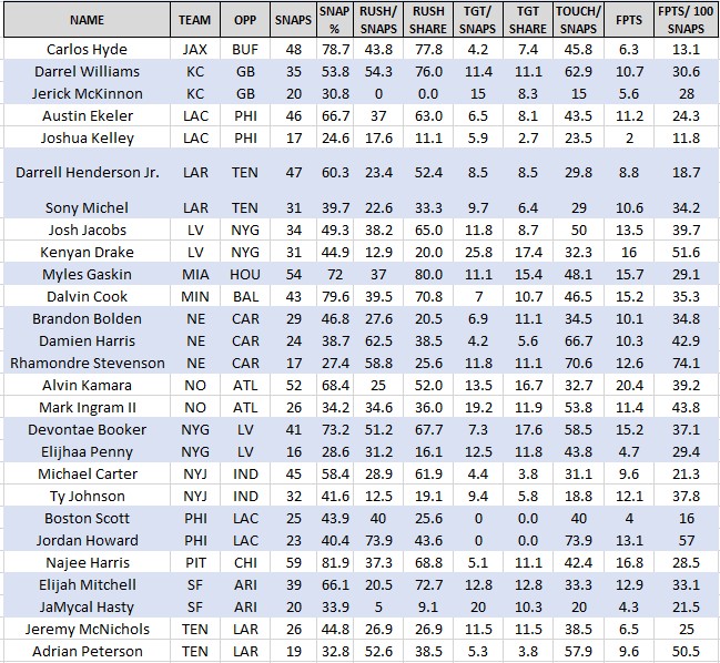 Rough fantasy performance out of Nelson Agholor, who didn’t even draw a single target in 54 snaps. It’s becoming increasingly difficult to trust any part of New England’s passing game even though it is slowly but surely improving.