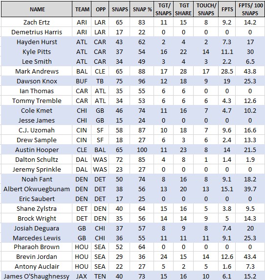 NFL snap data courtesy: SportsData – Previous Weeks: Week 1 | Week 2 | Week 3 | Week 4|Week 5|Week 6|Week 7|Week 8 |Week 9 |Week 10|Week 11|Week 12|Week 13
