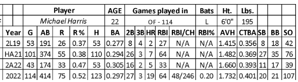 Harris has an elite contact batting average (.401 – .393 at AA) that was the best of his career at any level while improving each season. In addition, his average hit rate (1.732) was well above his minor-league career (1.509).