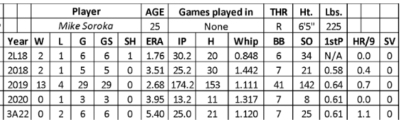 In late June 2019, his right forearm had some tightness, but the issue ended up being minor. After a pitch in his third start in 2020, one wrong step led to Soroka blowing out his right Achilles which required surgery in August. He never made it back to the mound for the Braves in 2021 due to a bum right shoulder in May and a setback in his Achilles (re-tear in late June that required surgery).
