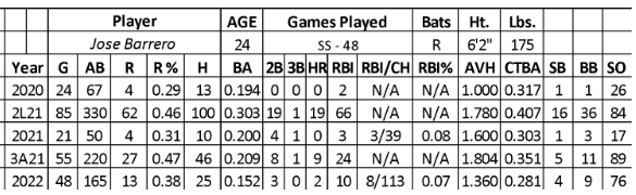 The Reds gave Barrero 48 games of experience in 2022, but his lack of confidence bled through his empty stats (.195/13/2/10/4 over 165 at-bats) while whiffing 43.7% of the time.