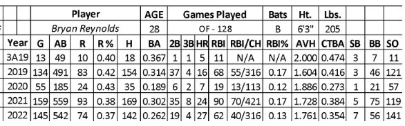 In 2020, Reynolds had an edge in contact batting average (.405 in his minor league career and .416 in his first season with the Pirates) but that has become a significant liability (.273). Reynolds struggled with runners on base (RBI rate – 12), but he did push his average hit rate (1.886) to an intriguing level. However, his hard-hit rate (38.0) was only league average.