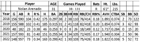 Arenado came to the plate with more than 400 runners on base for the seventh consecutive season, excluding the Covid-19 shortened season in 2020. His RBI rate (18 – in 2022) has been exceptional in his career (18.7).