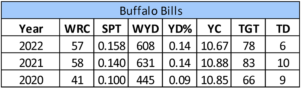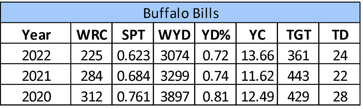 The Bills running backs finished with their most production since Josh Allen's arrival. They set three-year highs in rushing yards (1,470), yards per rush (4.9), catches (79), split percentage (21.9), receiving yards (609), yards per catch (7.7), and targets (113) while also playing one fewer game than 2021. If Josh Allen can continue incorporating his backs in the passing game, it will allow him to extend more drives and increase his chances of producing more yards and touchdowns.