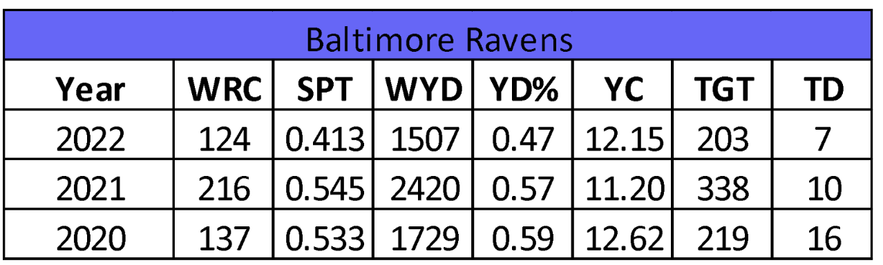 The foundation of the Ravens’ game plan and attack remains the same. They want to run the ball as much as possible while playing well on the defensive side of the ball. Baltimore ran the ball 51.9% of the time in 2022 while averaging 30.9 carries per game. They finished 22nd in combined yards. In 2022, their passing game showed more promise (4,267 yards). This may be a hint of more passes this season, helped by the additions at wide receiver in the offseason.