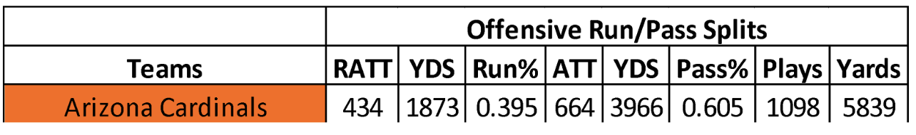 Favorable game flow led to the Cardinals ranking fourth in pass attempts (664) and third in plays (1,098). Without Kyler Murray for about seven games, Arizona ran the ball 3.7 times fewer than in 2022. However, the change in coaching staff points to a more balanced offense this season.