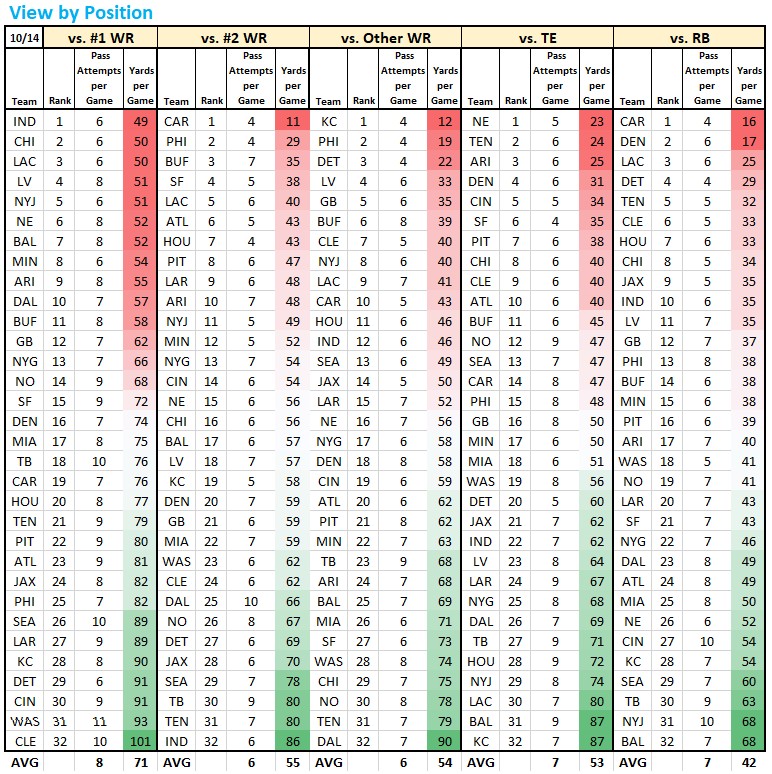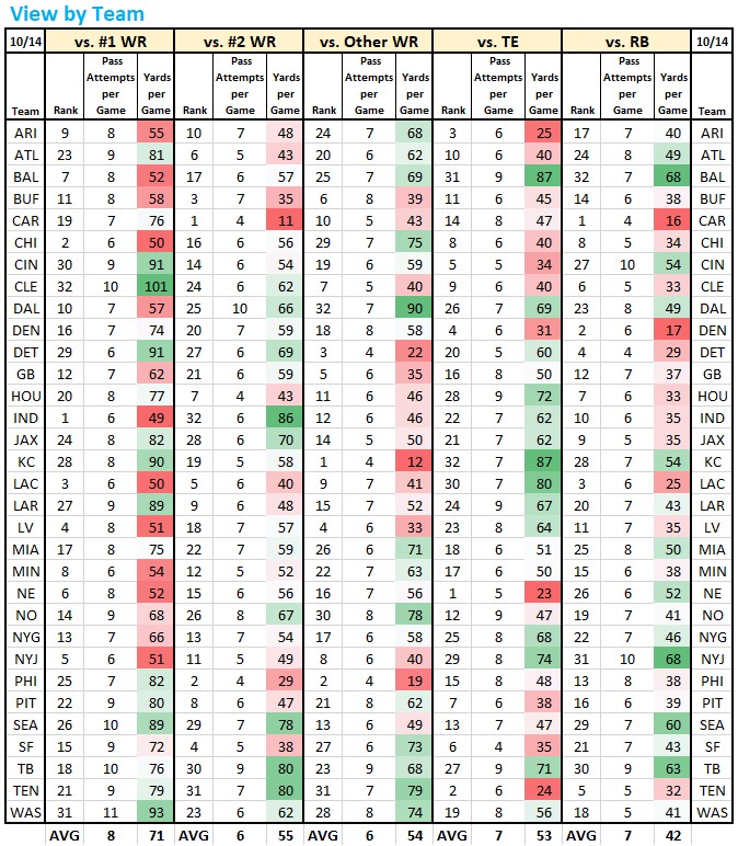 This new featured tool displays how each defense performs against their opponent’s receiving yardage gained by position.